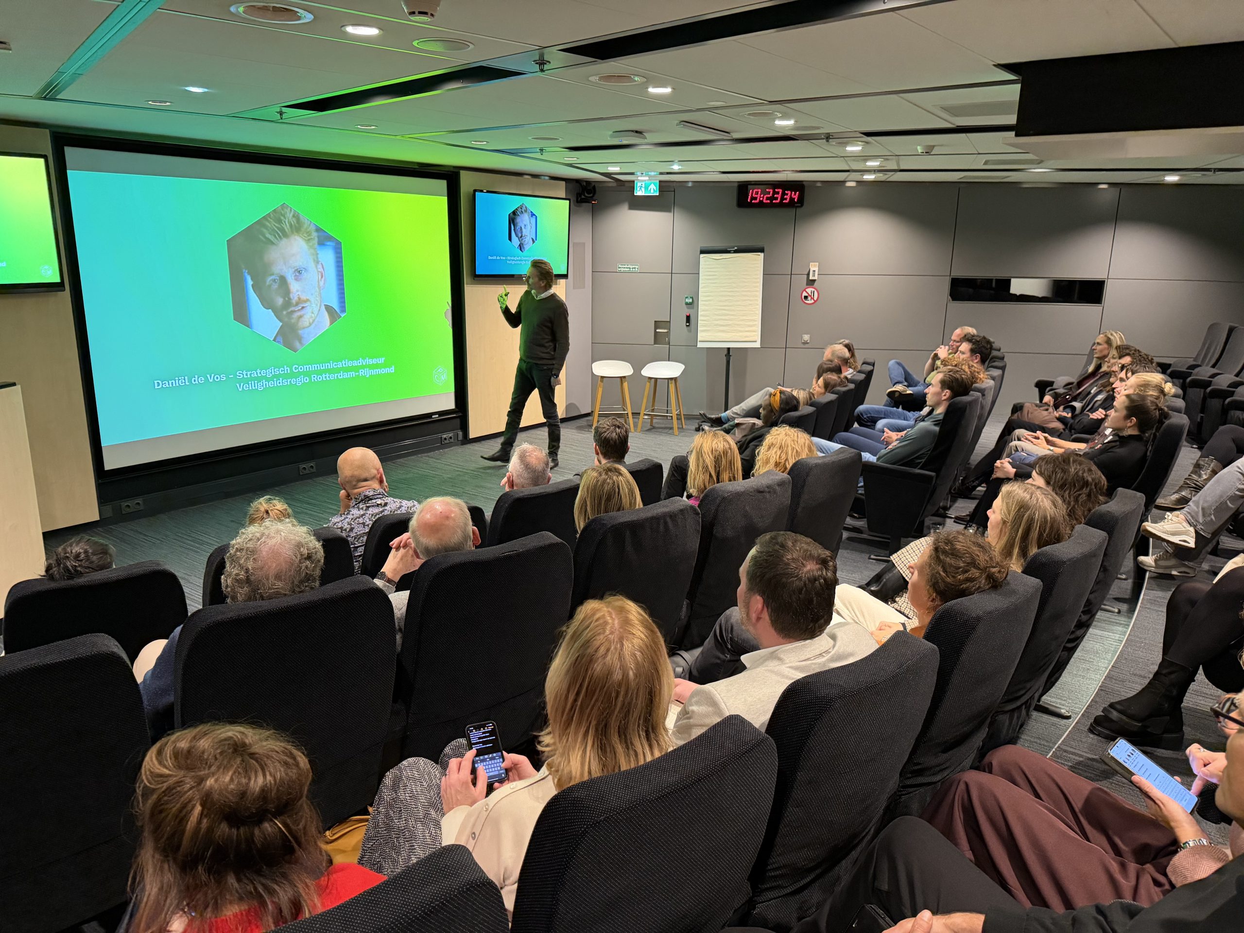 Na de praktijkervaringen rondom de Wereldhavendagen zoomde Daniël de Vos van de Veiligheidsregio Rotterdam-Rijnmond uit naar het grotere plaatje van risico- en crisiscommunicatie. Hij liet zien hoe de 1,3 miljoen inwoners in de regio worden geïnformeerd bij incidenten, welke sleutelbesluiten worden voorbereid voor grote evenementen, en hoe belangrijk het is om mensen tijdig aan te zetten tot actie. Met de bekroonde campagne “Download de meest rampzalige app ooit” liet hij bovendien zien hoe creatieve communicatie mensen bereikt en activeert: met stopping power én humor.